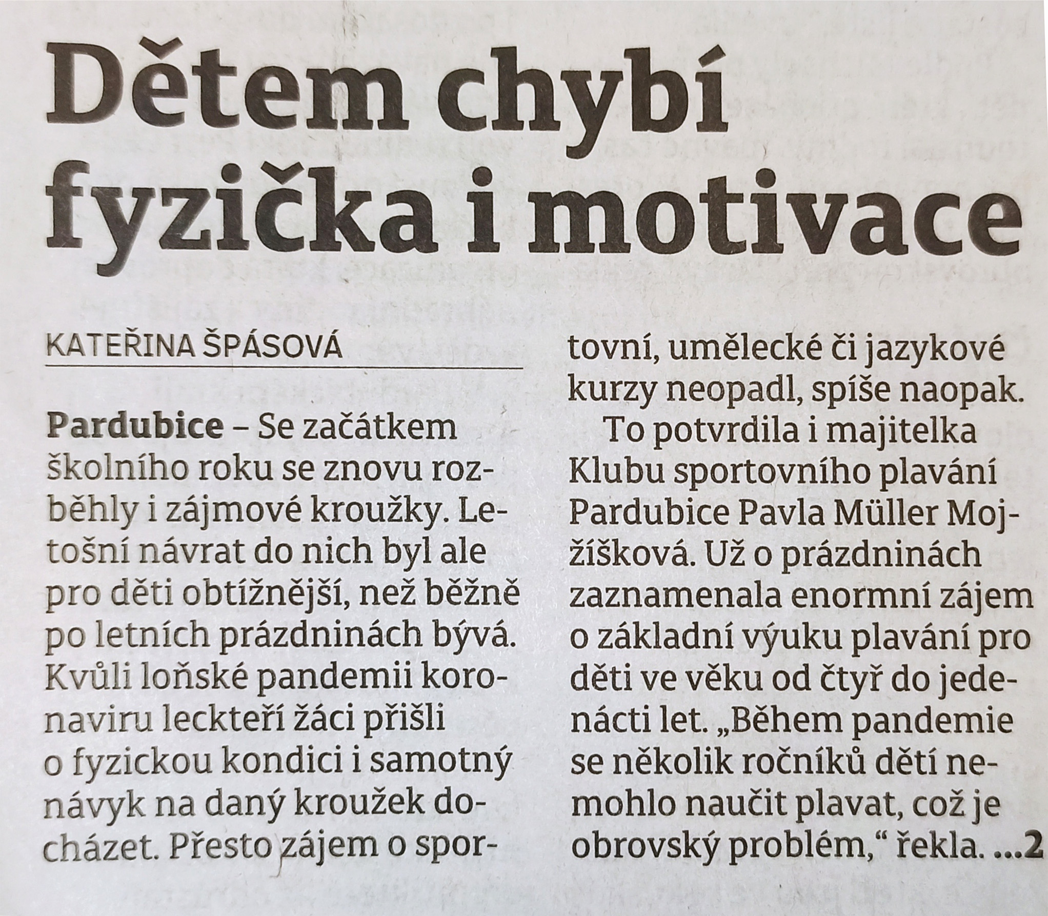 Dětem chybí fyzička i motivace