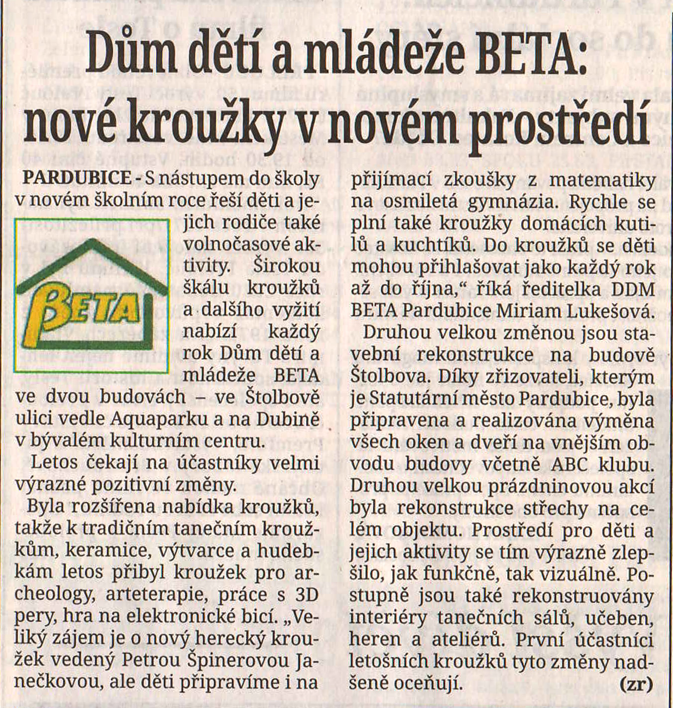 BETA – nové kroužky v novém prostředí…
