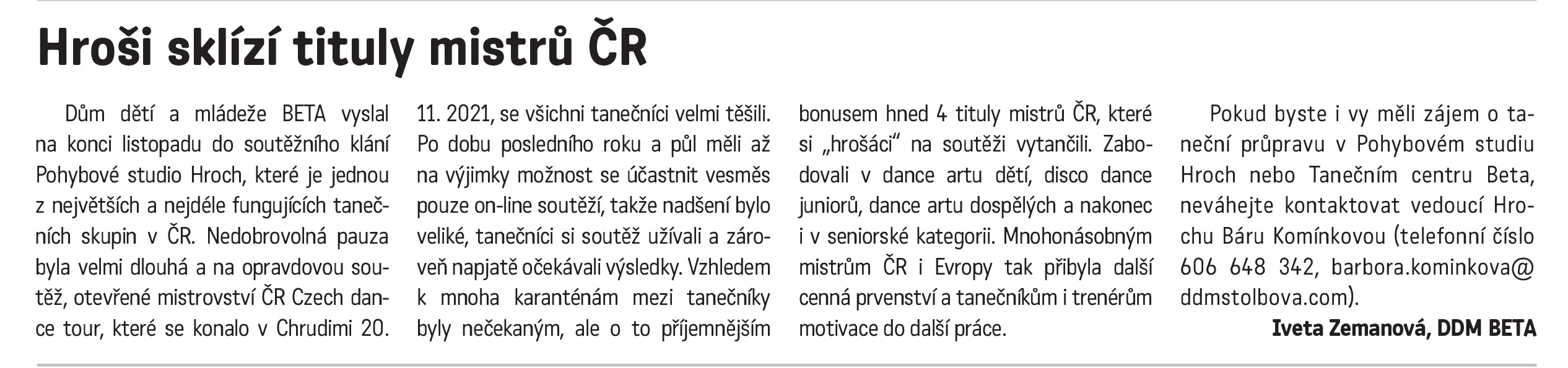 Dům dětí a mládeže BETA tančí a sklízí úspěchy. Spolek získal 4 tituly mistrů